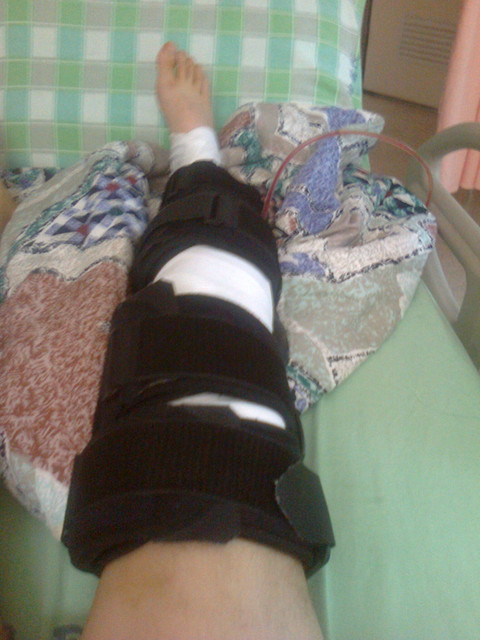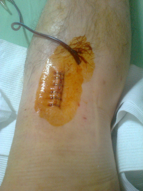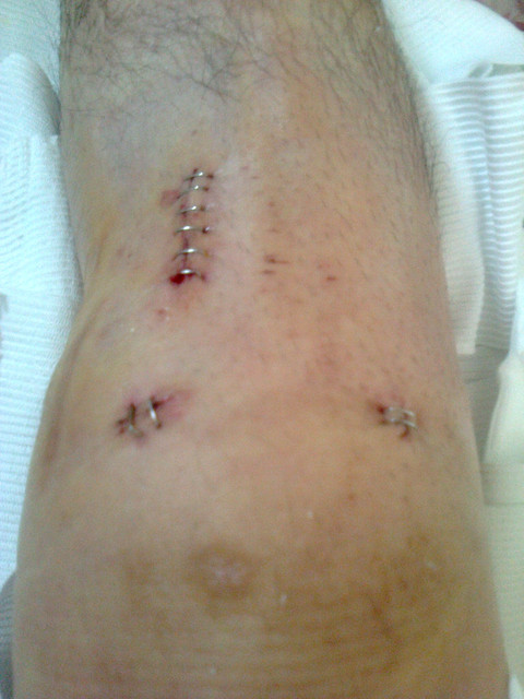 手術時間約兩個小時,採半身麻醉的方式進行,也因此手術期間醫生還會跟我報告手術進度,我印象最深刻的就是我的主治醫師跟我說:╳╳╳我取不到你右腳的肌腱,我要換取左腳的呦!我回答:OK;再下一句就是醫生說:╳╳╳手術已經完成了,你的肌腱又長又粗,很成功,然後就走人了,留下兩個住院醫師在我雙腿兩邊做傷口縫合的善後工作。
